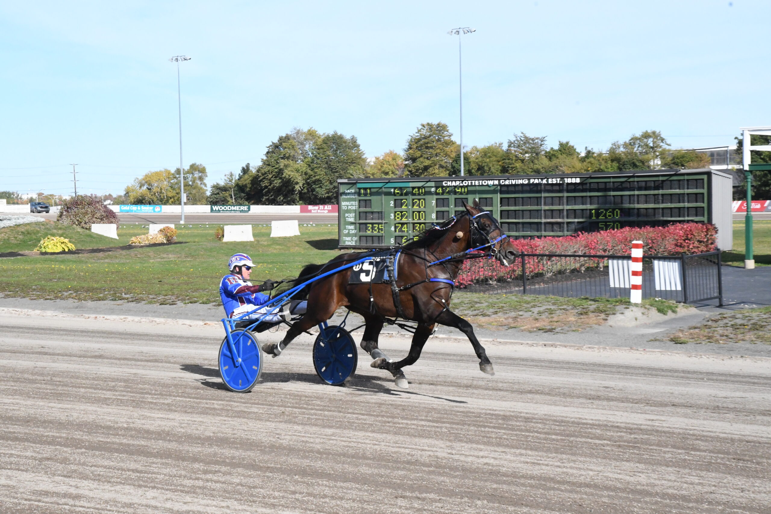 Roll Em set the Summerside Raceway pacing record of 1:51.1 in a Governor’s Plate elimination on July 9th, 2023, for owners Brady Doyle, Brent Campbell, Ryan MacLeod and Savage Stable, PE. The horse was trained and driven to victory by Marc Campbell.
